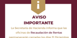 PERMANECERAN CERRADAS OFICINAS DE RECAUDACIÓN DE RENTAS DEL ESTADO 31 y...