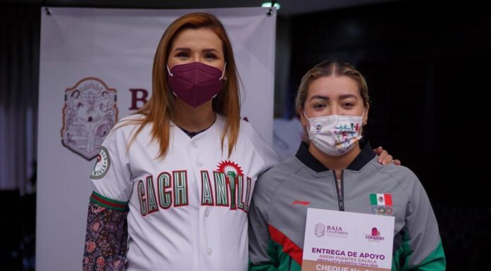 MEXICALI BC, 02 de noviembre de 2021.- Por su extraordinaria participación en los Juegos Olímpicos de Tokio este año, la deportista Aremi Fuentes, medallista en la disciplina de halterofilia, recibió el primer cheque del gobierno de Baja California por...