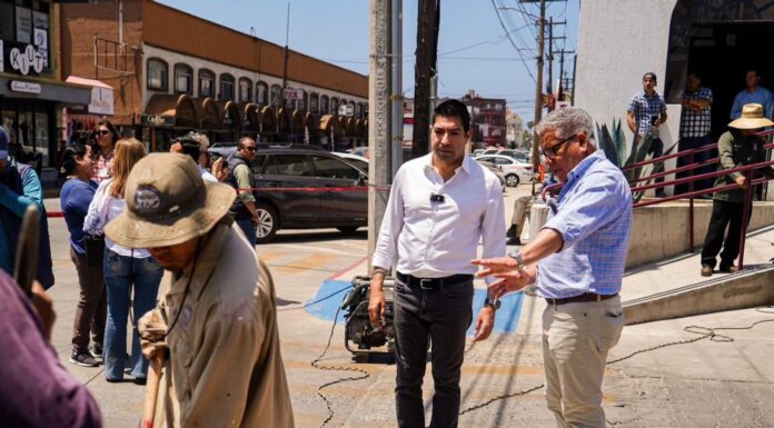 Ensenada.- El alcalde de Ensenada, Armando Ayala Robles, dio a conocer avances en la rehabilitación de banquetas y los trabajos de remozamiento en distintos espacios del Distrito Centro Histórico de Ensenada. Lo anterior durante un recorrido de supervisión.