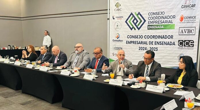 ENSENADA BC, 03 de junio de 2024.- En el evento de ratificación de la mesa directiva del Consejo Coordinador Empresarial de Ensenada (CCEE) para el periodo 2024-2025, el titular de la Secretaría de Economía e Innovación (SEI), Kurt Honold...