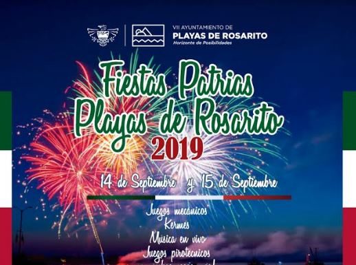 El VII Ayuntamiento de Playas de Rosarito, invita a la ciudadanía a las actividades programadas para la celebración del Aniversario 2019 del inicio de la Independencia de México; que se realizarán los días sábado 14 y domingo 15 de septiembre en las instalaciones de la Casa Municipal.
