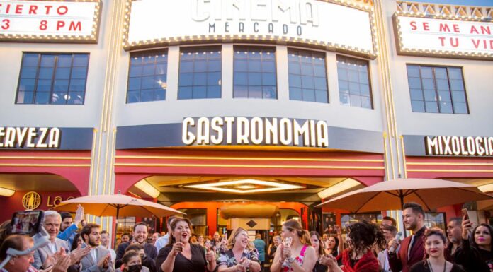 Inaugura sala de proyección en Mercado Cine Curto y apoya concierto en beneficio de orquestas comunitarias.