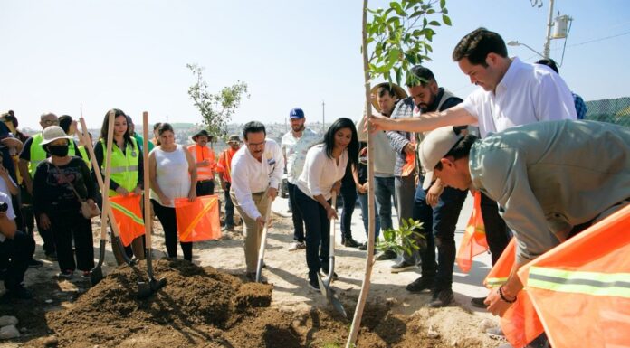 TIJUANA...-Llevan a cabo evento de sensibilización con la ciudadanía, la alcaldesa Montserrat Caballero Ramírez, acudió junto con un grupo de vecinos del Fraccionamiento Lomas de Santa Fe, acompañada de desarrolladores, para cumplir con la plantación de mil 200 árboles...