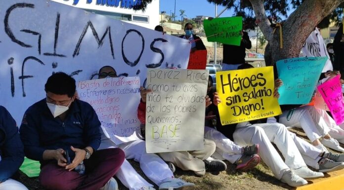 Trabajadores del sector salud de Tijuana se manifestaron por la falta de prestaciones laborales.