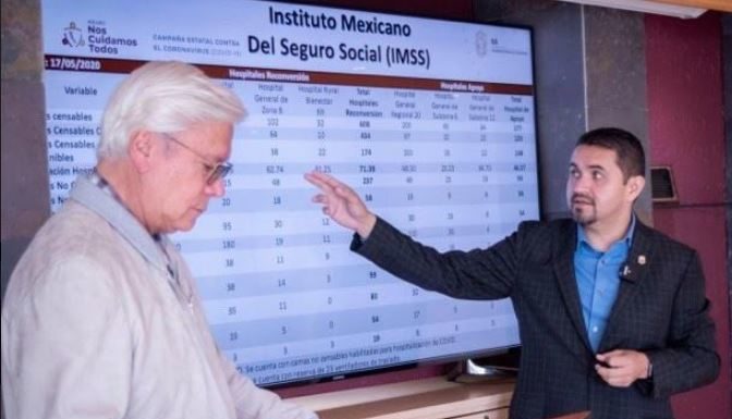 El gobernador Jaime Bonilla Valdez y el secretario de Salud, Alonso Óscar Pérez Rico, hacen un llamado a los mexicalenses para disminuir la dispersión del coronavirus.
