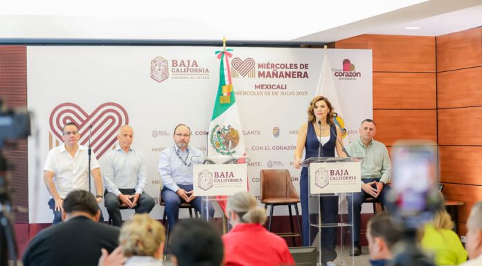 MEXICALI BC, 05 de julio de 2023.- Derivado del talento humano de Baja California, así como de sus ventajas logísticas, geográficas y económicas, la gobernadora Marina del Pilar Avila Olmeda anunció nuevas inversiones por 150 millones de dólares de...