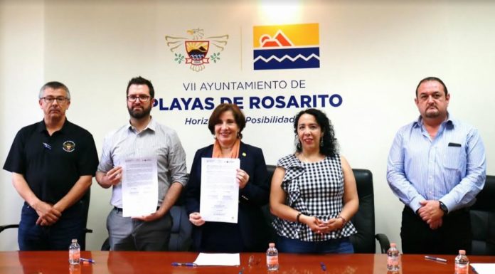 La Presidente Municipal, Mirna Rincón Vargas y el Director General del Instituto Nacional del Suelo Sustentable (Insus), José Antonio Iracheta Carroll, firmaron un convenio de colaboración en el que se acuerda la regularización de los fraccionamientos de Playas de Rosarito, signando como testigo de los hechos la Alcaldesa Electa, Aracely Brown Figueredo.