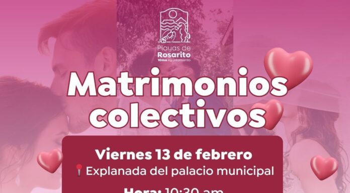 PLAYAS DE ROSARITO BC, 08 de enero de 2026.- El Registro Civil de Playas de Rosarito, invita a la ciudadanía a participar en el programa de Matrimonios Colectivos 2026, una acción que promueve la certeza jurídica y el fortalecimiento...