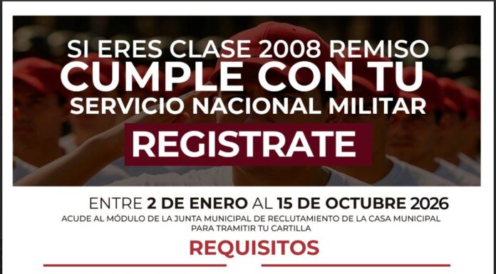 PLAYAS DE ROSARITO BC, 08 de enero de 2026.- El 10° Ayuntamiento de Playas de Rosarito informa a la ciudadanía que se encuentra abierta la convocatoria para obtener la Pre-Cartilla del Servicio Militar Nacional (S.M.N.), dirigida a jóvenes Clase...