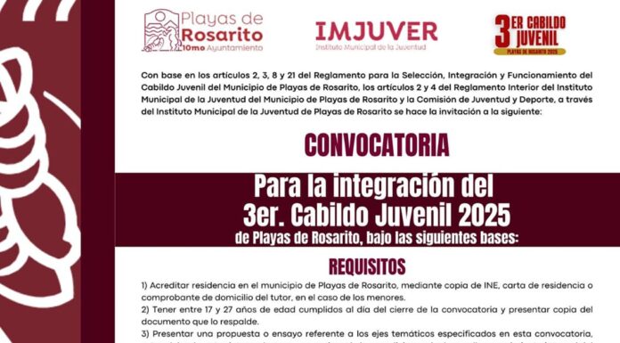 PLAYAS DE ROSARITO BC, 26 de febrero de 2025.- El Instituto Municipal de la Juventud (IMJUVER) de Playas de Rosarito, informa que el próximo lunes 10 de marzo será la...