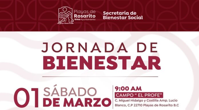 PLAYAS DE ROSARITO BC, 28 de febrero de 2025.- La Secretaría de Bienestar Social de Playas de Rosarito, extiende una cordial invitación a la comunidad rosaritense para participar en la próxima Jornada de Bienestar que se llevará a cabo...