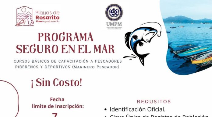 PLAYAS DE ROSARITO BC, 05 de febrero de 2025.- El 10mo. Ayuntamiento de Playas de Rosarito, invita a la comunidad de pescadores ribereños y deportivos a inscribirse en los cursos básicos de capacitación del programa "Seguro en el Mar"....