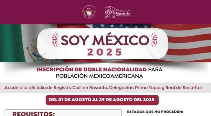PLAYAS DE ROSARITO BC, 28 de julio de 2025.- Con el objetivo de brindar certeza jurídica a niñas, niños y jóvenes nacidos en Estados Unidos, hijos de padres mexicanos, el 10° Ayuntamiento de Playas de Rosarito, encabezado por la...