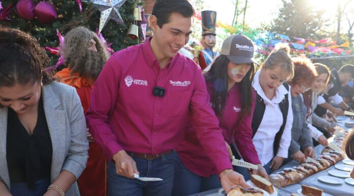TECATE BC, 05 de enero de 2025. – En una emotiva celebración llena de tradición y alegría, el Gobierno Municipal de Tecate, y el presidente municipal Román Cota, realizó el ya esperado corte de la monumental Rosca de Reyes...