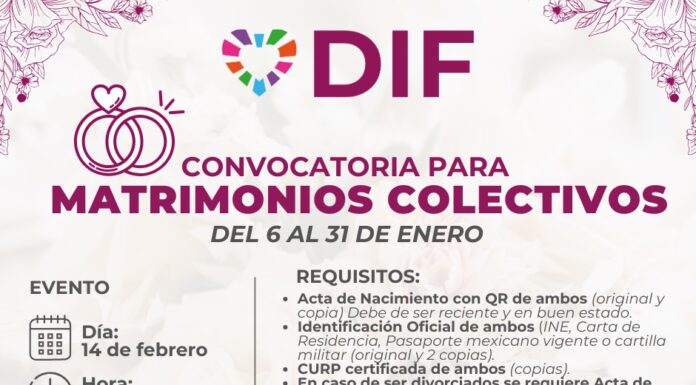 **El Sistema DIF Municipal lanzó convocatoria para efectuar los matrimonios el próximo 14 de febrero