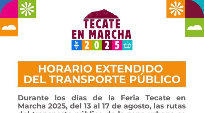 TECATE BC, 12 de agosto de 2025. – Pensando en el bienestar y comodidad de las familias tecatenses y de quienes visitan el municipio, el Gobierno de Tecate implementará un horario especial de transporte público durante la Feria Tecate...
