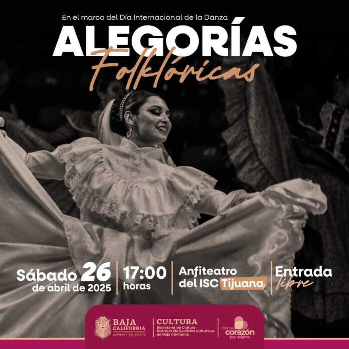 TIJUANA BC, 24 de abril de 2025.- En el marco del Día Internacional de la Danza, se celebrará en Tijuana la primera edición del festival “Alegorías Folklóricas”, una propuesta artística que busca rendir homenaje a las raíces culturales de México a través de la danza tradicional, el próximo sábado 26 de abril a las 17:00 horas, en el anfiteatro del Instituto de Servicios Culturales (ISC).