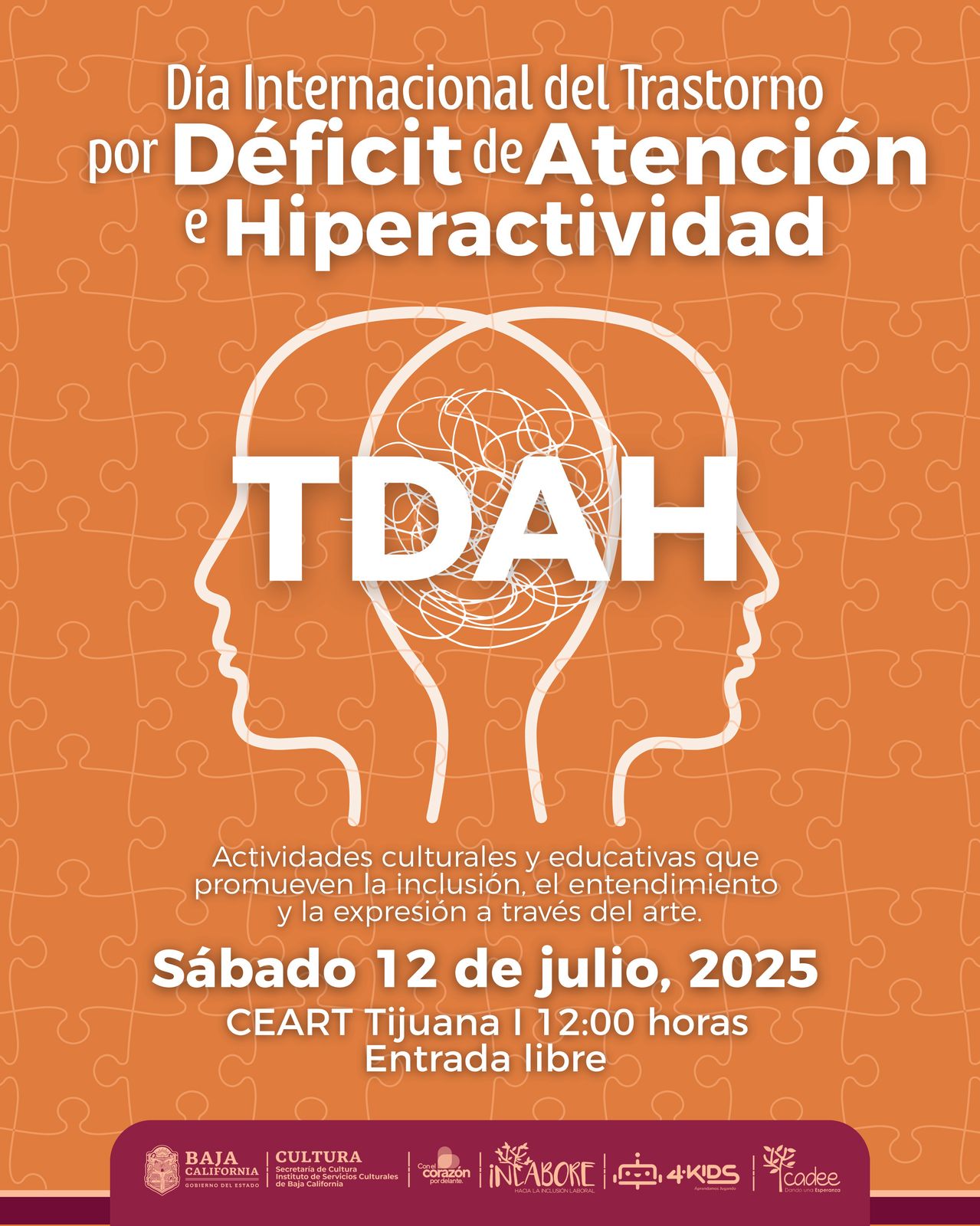 TIJUANA BC, 11 de julio de 2025. – Con el objetivo de promover la comprensión, inclusión y expresión artística en torno al Trastorno por Déficit de Atención (TDAH), el Instituto de Servicios Culturales (ISC) llevará a cabo la jornada “Comprender para Acompañar” este sábado 12 de julio en el Centro Estatal de las Artes (CEART) Tijuana, a partir de las 12:00 horas.