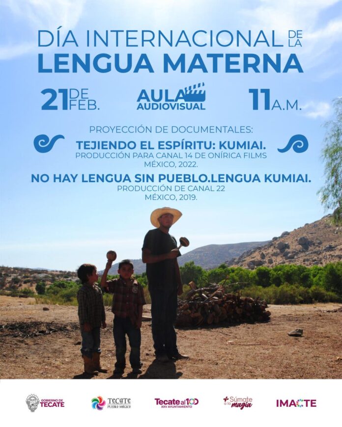 TECATE BC, 18 de febrero de 2025.- El Gobierno Municipal de Tecate, a través del Instituto Municipal de Arte y Cultura de Tecate (IMACTE), invita a la comunidad a conmemorar el Día Internacional de la Lengua Materna mediante la proyección de documentales sobre la historia y la riqueza cultural del pueblo Kumiai, originario de Tecate.