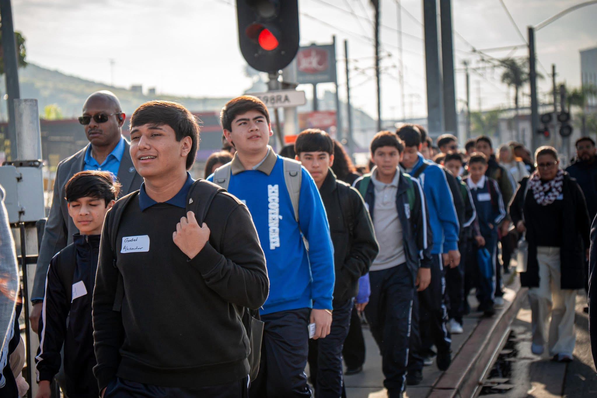 Como parte de la actividad, el alcalde cruzó la frontera por el cruce peatonal de la Garita de San Ysidro, acompañado del Cónsul de Estados Unidos en Tijuana, Christopher Teal, y alrededor de 60 estudiantes, para participar en un recorrido cultural en Balboa Park.