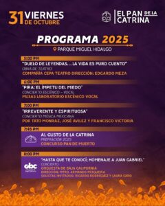 TECATE BC, 31 de octubre de 2025. – El Gobierno de Tecate invita a toda la comunidad a ser parte de las actividades culturales y artísticas programadas para este viernes dentro del festival “El Pan de la Catrina 2025”, el festival del Día de Muertos más grande de la región.