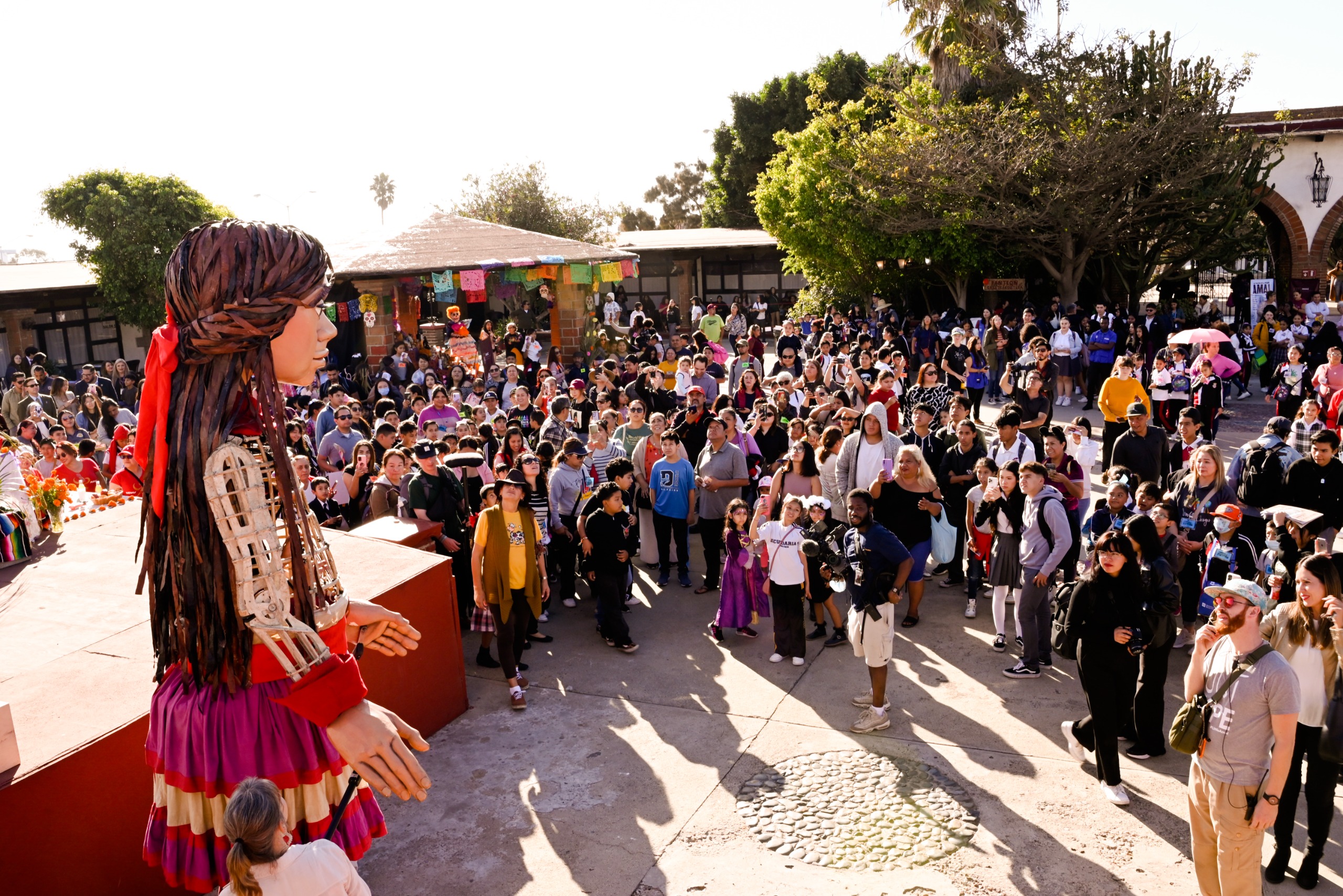 TIJUANA BC, 07 de noviembre de 2023.- Durante su estancia en Tijuana, Amal, la marioneta que representa a los niños refugiados del mundo, realizó un recorrido por las tradiciones mexicanas en la Casa de la Cultura de Playas, donde estuvo acompañada por autoridades del XXIV Ayuntamiento, además de rodearse de 600 niños, niñas y adolescentes de distintas escuelas de la demarcación.