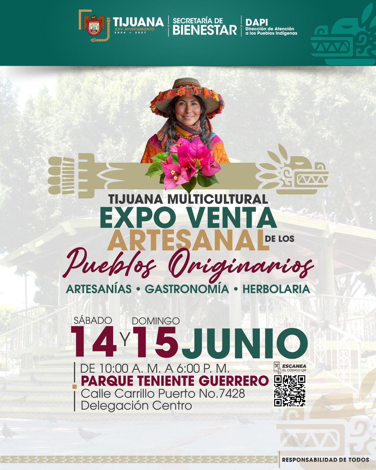 TIJUANA BC, 13 de junio de 2025. El sábado 14 y el domingo 15 de junio, se llevará a cabo el evento ‘Tijuana Multicultural: Expo-Venta Artesanal de los Pueblos Originarios’ en el Parque Teniente Guerrero de la Zona Centro, a fin de impulsar el desarrollo económico de las comunidades indígenas y afromexicanas.