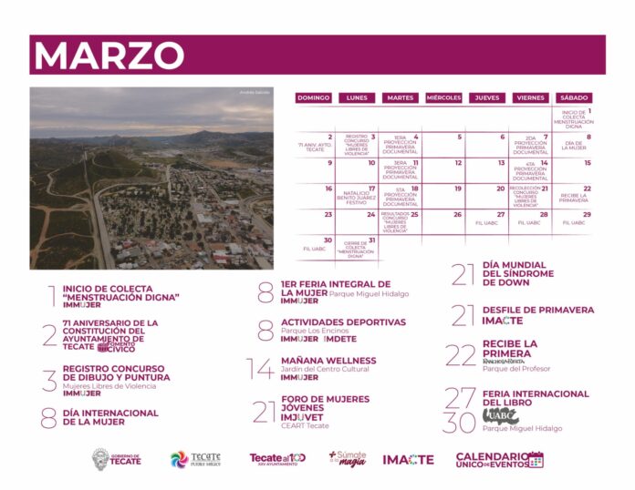**El Ayuntamiento de Tecate invita a la comunidad a participar en las actividades programadas para el mes de marzo como parte del Calendario Único de Eventos