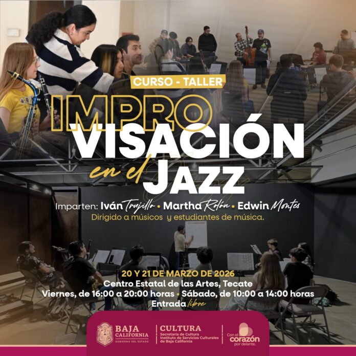 TECATE BC, 17 de marzo de 2026. – El Centro Estatal de las Artes (CEART) Tecate invita a músicos, estudiantes y público interesado a participar en el Taller Intensivo de Improvisación en Jazz, que se llevará a cabo los días 20 y 21 de marzo, con entrada libre.
