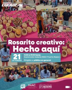 En este sentido, la directora del IMAC, Isabel Peredo, informó que el próximo sábado 21 de febrero se realizará “Rosarito Creativo: Hecho Aquí”, un bazar artesanal en la Galería IMAC, ubicada en la Plaza del Museo de Puerto Nuevo, donde creadoras y creadores locales ofrecerán piezas originales elaboradas en la región. Señaló que estas actividades fomentan el consumo local y generan espacios de convivencia para las familias rosaritenses.