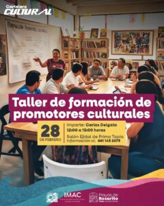 Asimismo, el Gobierno Municipal invita a participar en el Taller de Formación de Promotores Culturales Comunitarios, que será impartido por el artista y promotor cultural Carlos Delgado el 28 de febrero en el Salón Ejidal de Primo Tapia. Este taller brindará herramientas para diseñar, desarrollar y gestionar iniciativas culturales comunitarias, contribuyendo a la profesionalización del trabajo cultural.