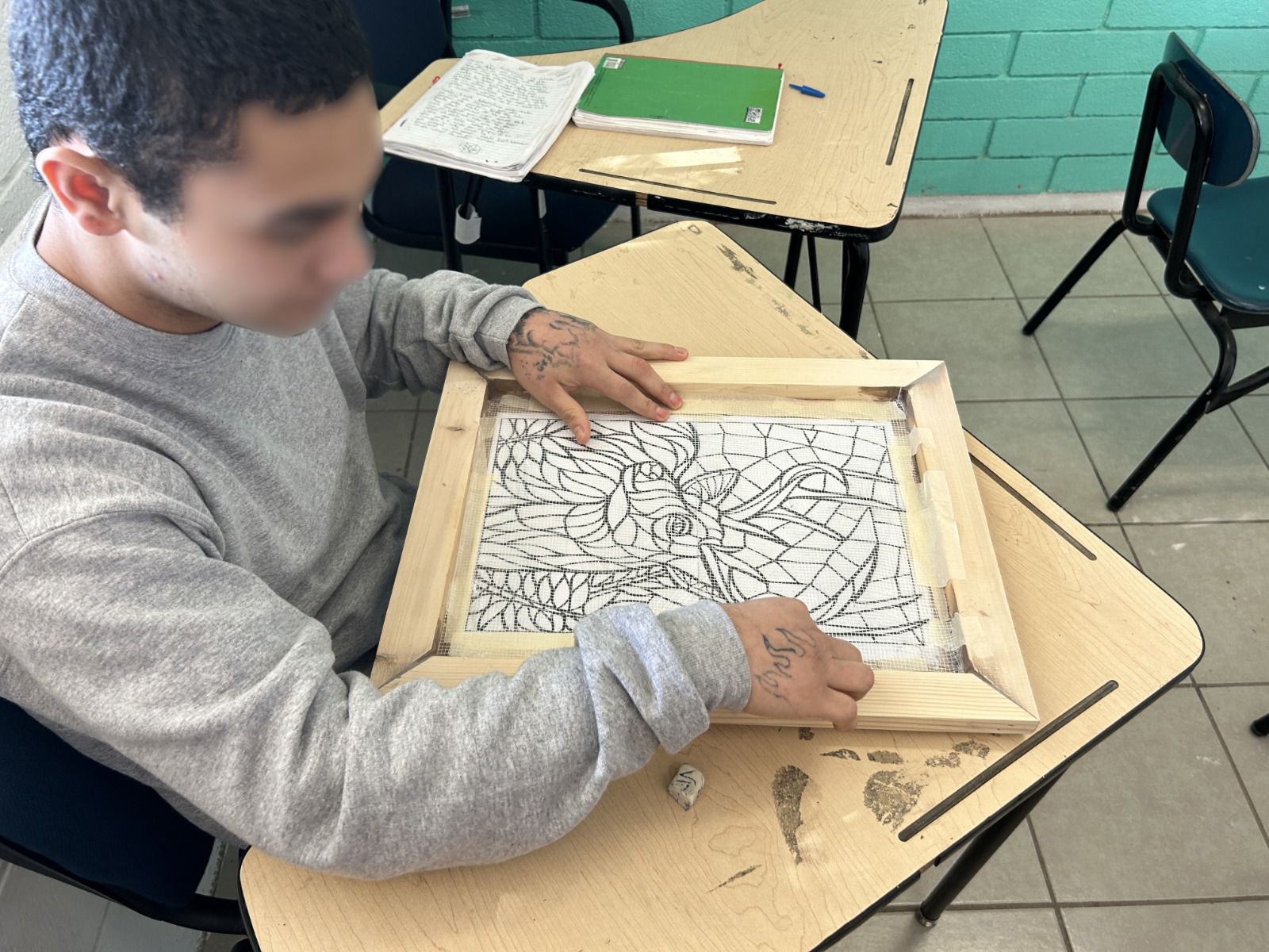 MEXICALI BC, 01 de febrero de 2024.- Con la finalidad de que los jóvenes en proceso de reinserción, logren una transformación integral que les permita reincorporarse a sus respectivos núcleos familiares y sociales al concluir la estancia privativa para que puedan desarrollarse en los diferentes sectores de la sociedad, además de frenar toda posibilidad de reincidencia delictiva, la Comisión Estatal del Sistema Penitenciario (CESISPE), imparte el taller cultural «Mosaico» a la población del Centro de Internamiento para Adolescentes (CIA) de Mexicali, en coadyuvancia con la Telesecundaria 85.