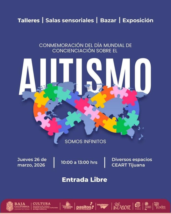 TIJUANA BC, 19 de marzo de 2026.– En el marco del Día Mundial de Concienciación del Autismo, el Centro Estatal de las Artes (CEART) Tijuana llevará a cabo la jornada de sensibilización “Somos Infinitos”, este jueves 26 de marzo a partir de las 10:00 horas, con entrada libre para toda la comunidad.