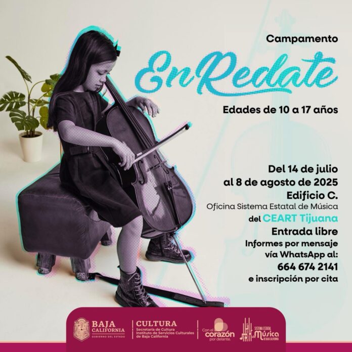 TIJUANA BC, 17 de julio de 2025. – Con el objetivo de brindar una experiencia musical transformadora a niñas, niños y jóvenes de entre 10 y 17 años, la Secretaría de Cultura de Baja California, a través del Sistema Estatal de Música y el Centro Estatal de las Artes Tijuana (CEART Tijuana), inauguró el Campamento de Verano “EnRédate”.