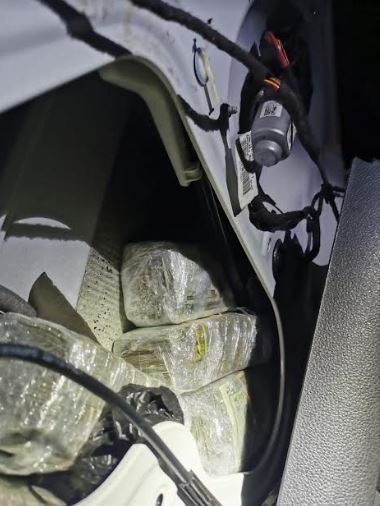 Un sensor canino encontró numerario de origen americano de distintas denominaciones escondido en paquetes entre las puertas del vehículo, se contabilizó el monto escondido danto un aproximado de 200 mil dólares, por lo que tanto el pasajero, el vehículo y los billetes fueron puestos a disposición de las autoridades competentes para determinar la situación jurídica del individuo.