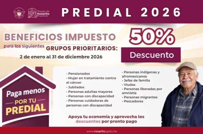 ANUNCIA AYUNTAMIENTO DE PLAYAS DE ROSARITO ATRACTIVOS DESCUENTOS EN EL PAGO DE PREDIAL 2026