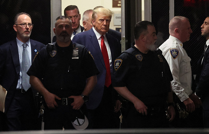Trump de 76 años dijo ser inocente de los 34 cargos por delitos graves que se le imputan. Abandonó la sala del Tribunal sin comentarios a la prensa.