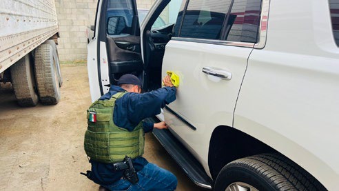 Agentes adscritos a la Unidad de Investigación Especializada en Robo de Vehículos localizaron un automóvil con reporte de robo dentro del predio, lo que derivó en la solicitud y ejecución de una orden de cateo.
