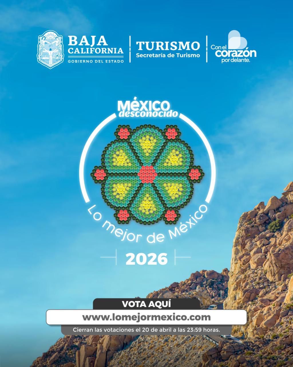 Playas de Rosarito.– Baja California se encuentra en la etapa decisiva para consolidarse como el destino más destacado del país en la octava edición de los premios «Lo Mejor de México». La Secretaría de Turismo del Estado, encabezada por Miguel Ángel Badiola Montaño, hizo un llamado urgente a la población para emitir sus votos antes de que la plataforma cierre este lunes 20 de abril a las 21:59 horas (tiempo del centro).
