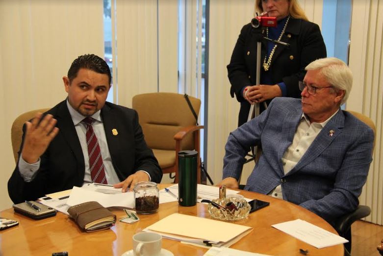 ENSENADA, B.C., 27 de noviembre de 2019.- El gobernador de Baja California, Jaime Bonilla Valdez, giró instrucciones para la construcción en Tijuana del primer centro integral de atención al cáncer de mama, durante una reunión con el presidente ejecutivo de la Fundación Cáncer de Mama (FUCAM), Fernando Guisa Hohenstein.