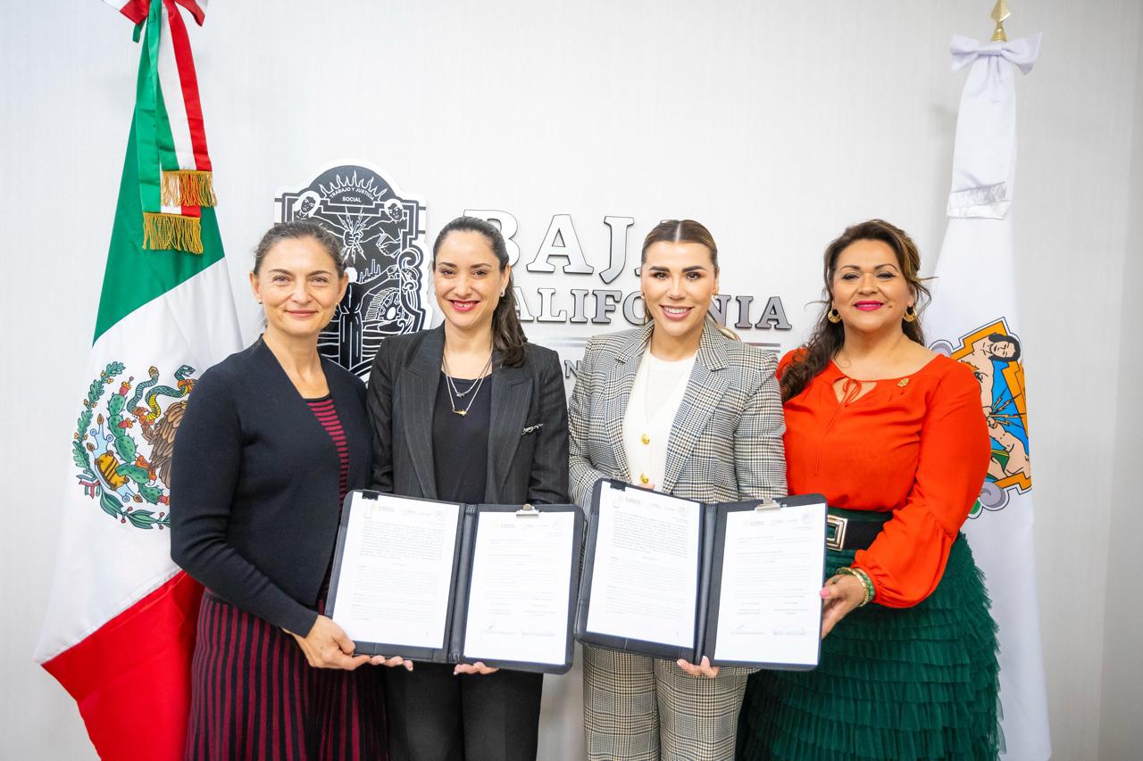 En la firma del convenio también estuvieron presentes la secretaria de Cultura de Baja California, Alma Delia Ábrego Ceballos, y la subsecretaria de Desarrollo Cultural del Gobierno de México, Marina Núñez Bespalova.