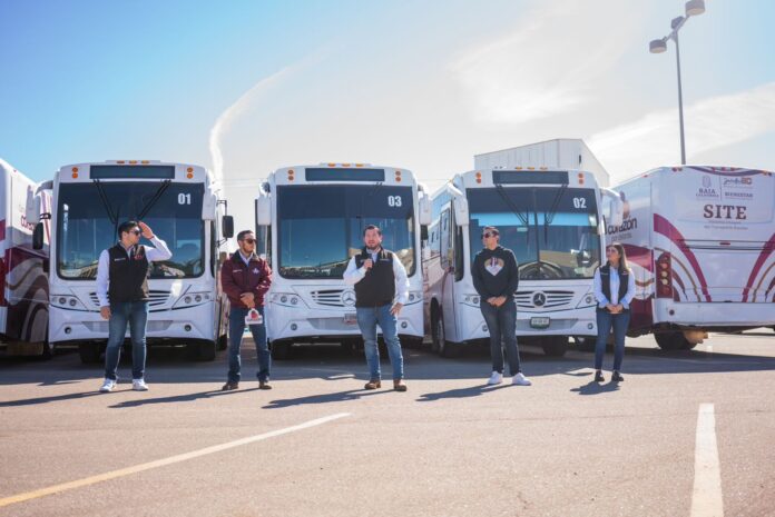 MEXICALI BC, 11 de diciembre de 2023..– Como parte de las acciones encaminadas a apoyar la educación y brindar más oportunidades a los estudiantes, la administración estatal que encabeza la Gobernadora de Baja California, Marina del Pilar Avila Olmeda, la Secretaria de Bienestar y el Instituto de la Juventud del Estado (Juventud BC) a través del Sistema Integral del Transporte Escolar realizó la presentación de unidades del “Comunder”, el cual brinda atención a jóvenes estudiantes para asistir diariamente a sus centros escolares.