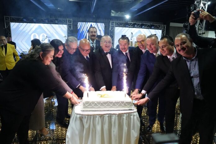 Tijuana.- La Cámara Nacional de Comercio (Canaco) Tijuana se vistió de gala al celebrar su 99 aniversario de fundación. Con este emotivo evento, se inicia la cuenta regresiva rumbo al Centenario con más de 400 testigos de honor que acompañaron a su presidente Olivaldo Paz Gómez en esta velada festiva.