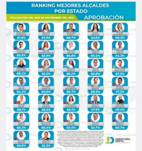 Cabe destacar que, Morena avala la misma evaluación que ubica a Claudia Agaton Muñiz como la alcaldesa mujer mejor evaluada en el país en el 7mo lugar nacional.