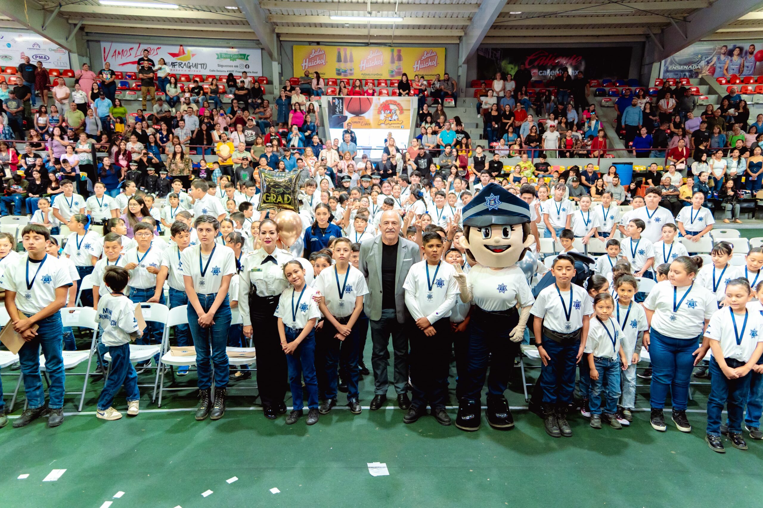 En este acto protocolario en el que participaron más de 200 niñas, niños y adolescentes, se llevó a cabo la entrega de reconocimientos, medallas y constancias a cada uno de los cadetes de esta primera generación, como símbolo del esfuerzo, el aprendizaje y la participación activa en esta experiencia de proximidad con la corporación policial.