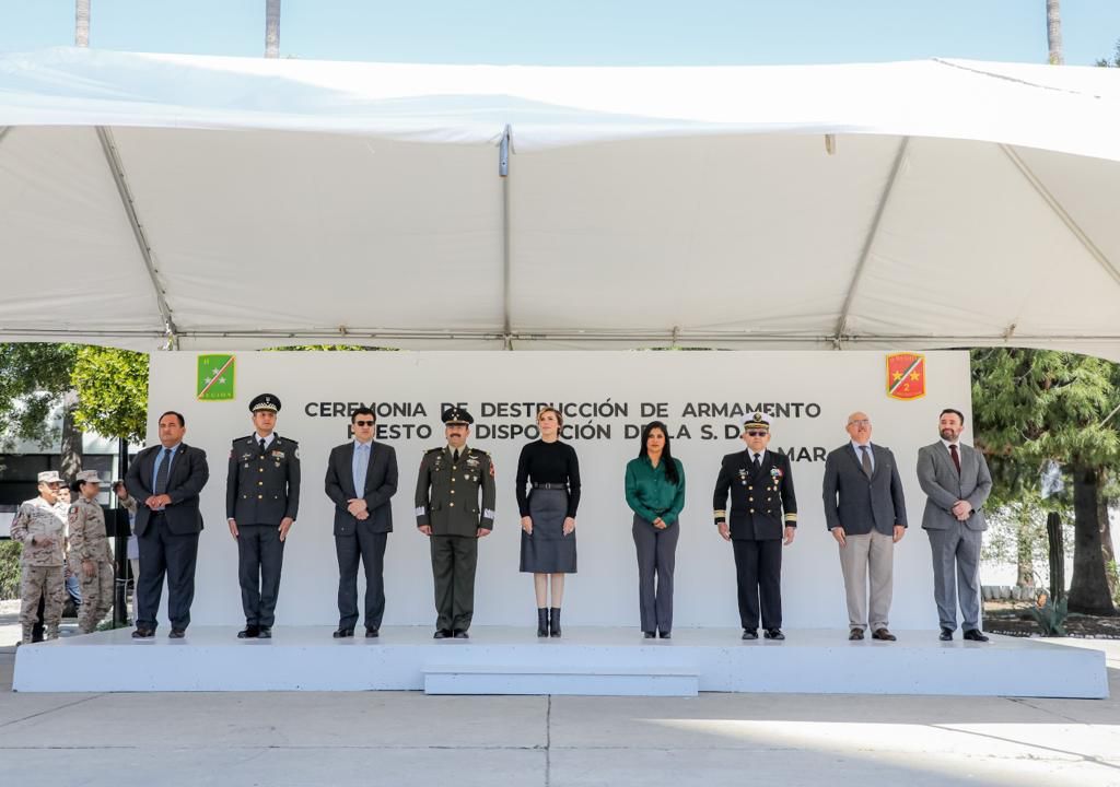 En una ceremonia encabezada por la gobernadora de Baja California, María del Pilar Ávila Olmeda, la alcaldesa de la ciudad, Montserrat Caballero y líderes militares del estado en el Cuartel Morelos de la ciudad de Tijuana, la mañana de este viernes, fueron destruidas cientos de armas decomisadas a criminales.