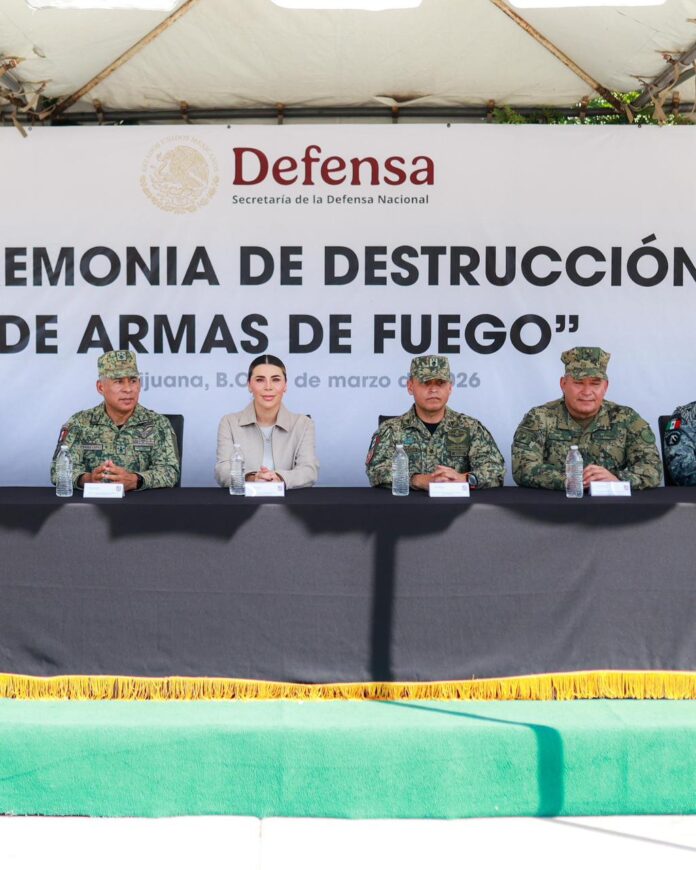 TIJUANA BC, 17 de marzo de 2026.– Como parte de las estrategias impulsadas por la presidenta Claudia Sheinbaum Pardo, para preservar la paz, la gobernadora Marina del Pilar Avila Olmeda asistió al acto de destrucción de más de 1 mil 700 armas de fuego, lo que refleja el trabajo interinstitucional que se realiza en el estado para fortalecer la seguridad pública y garantizar el bienestar de las familias bajacalifornianas.
