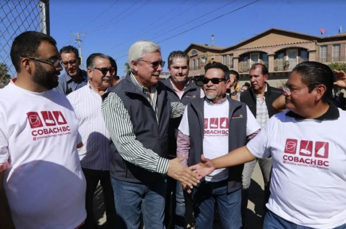 Tijuana BC, 09 de noviembre de 2019.- El gobernador Jaime Bonilla Valdez pone en marcha el programa “Un Día por tu Plantel’’ que involucra a directivos, maestros y alumnos en la rehabilitación de espacios educativos para mejorar una sana convivencia y aprovechamiento en la educación, al acudir a su primera visita como mandatario estatal en el plantel COBACH, fue ahí donde el gobernador , Jaime Bonilla Valdez formuló un compromiso con los estudiantes: “Ustedes se dedican a estudiar y a superarse, y nosotros, como gobierno, a darles las herramientas y los espacios dignos para su desarrollo pleno”. También alentó a los estudiantes a poner su mayor esfuerzo y dedicación al estudio, para lo cual el gobierno asume su compromiso de darles herramientas para su pleno desarrollo.