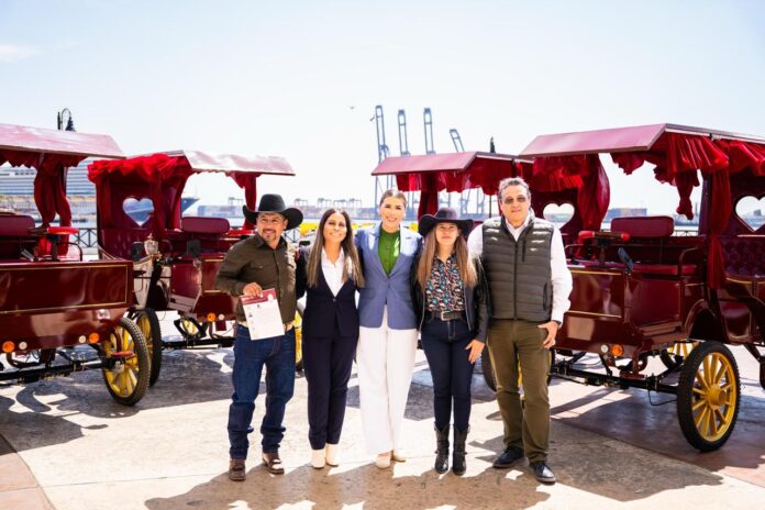 ENSENADA BC, 21 de abril de 2025.- Permisionarios reciben calandrias eléctricas por parte del ayuntamiento de Ensenada, esto con el objetivo de dar un paso firme hacia un futuro más justo, más verde y más humano, así lo afirmó la alcaldesa de Ensenada, Claudia Agatón Muñiz, durante el protocolo de entrega de 10 calandrias; las cuales son elementos de atracción turística tradicionales de la Cenicienta del Pacífico.