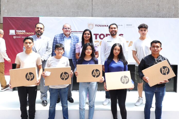 Tijuana, Baja California, 02 de agosto de 2023.- Montserrat Caballero Ramírez, Alcaldesa de Tijuana, a través del Instituto Municipal de la Juventud (IMJUV), hizo entrega de 200 computadoras portátiles a estudiantes de secundaria, preparatoria y universidad, como parte del programa “Todos Conectados”.